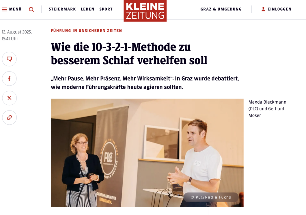 Ob Geschäftsführer:in, Manager:in oder Unternehmer:in – wer in unsicheren Zeiten wirksam führen will, muss zuerst sich selbst führen. Die 10-3-2-1-Methode zeigt, wie einfach sich Schlaf und Regeneration strukturieren lassen.